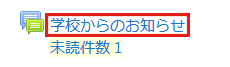 | ①「学校からのお知らせ」をクリックします。 ※未読のお知らせがある場合、未読件数が表示されています。 |