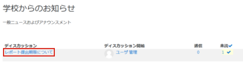 | ※ディスカッションの一覧の未読欄で内容を未読かどうか確認することができます。 |
