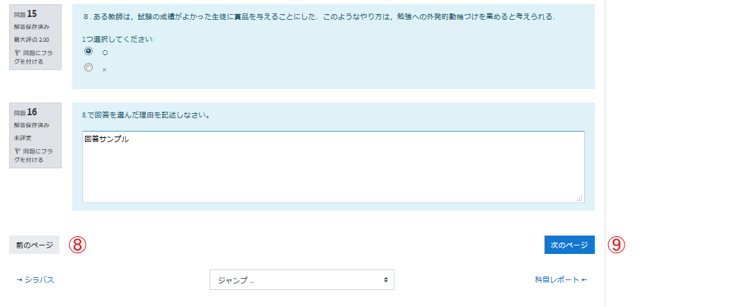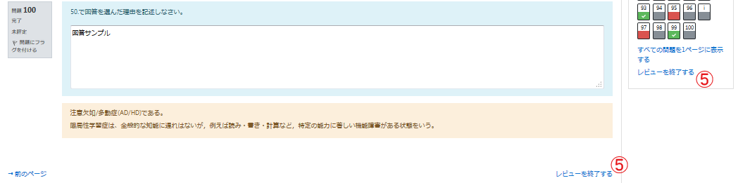 | ⑥記述問題 | 回答理由を記述してください。 |