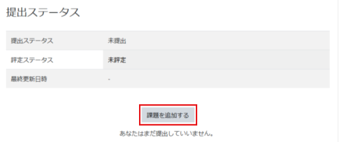 | 提出ステータス画面が表示されます。 ④レポートのファイル名が正しいことを確認し、「課題を提出する」をクリックします。 |