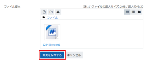 | ③ファイル提出の枠内にWordのアイコンが表示されているのを確認し、「変更を保存する」をクリックします。 | |
