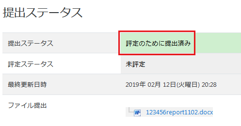 | 提出ステータスに「評定のために提出済み」と表示されていれば、提出完了です。 | |