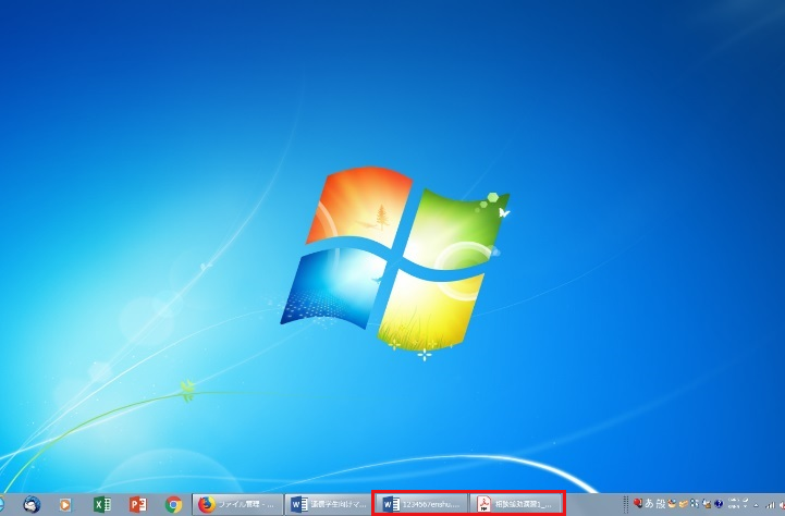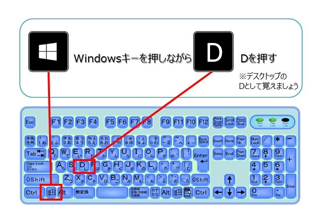 ①問題ファイル(pdf)と解答用紙ファイル(Word)を開いておきます。 ②Windows+Dを押し、すべてのウィンドウを最小化します。 |