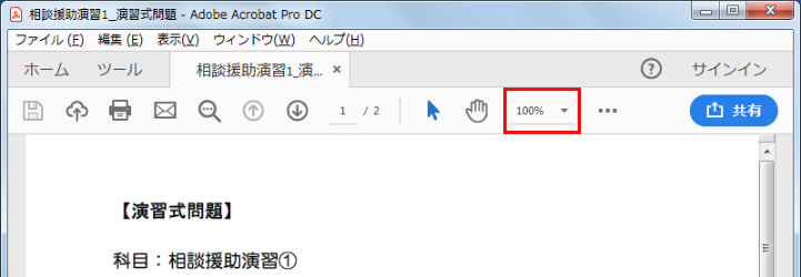 ※画面表示サイズの変更について pdfファイルの場合 画面上部の%表示から表示サイズを変更します。 | |