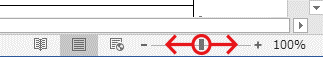 Wordの場合 画面右下の%表示を左右に動かし変更します。 |