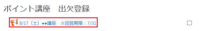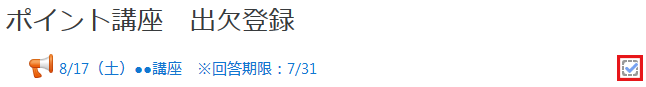 ポイント講座はアンケート機能を使って出欠確認を行います。締切までにアンケートへの回答をお願いします。